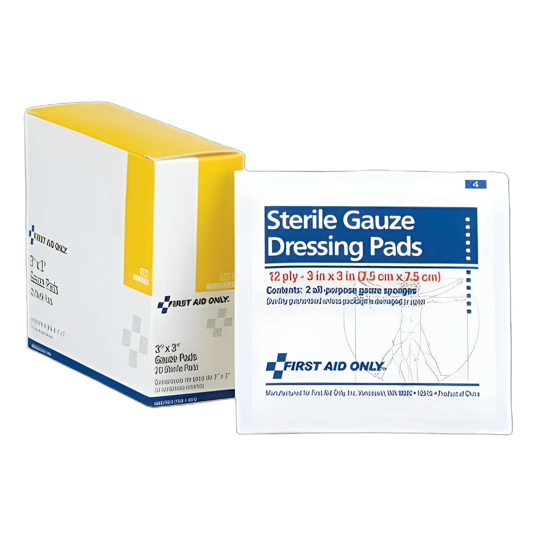 - Sterile gauze dual pad packs.