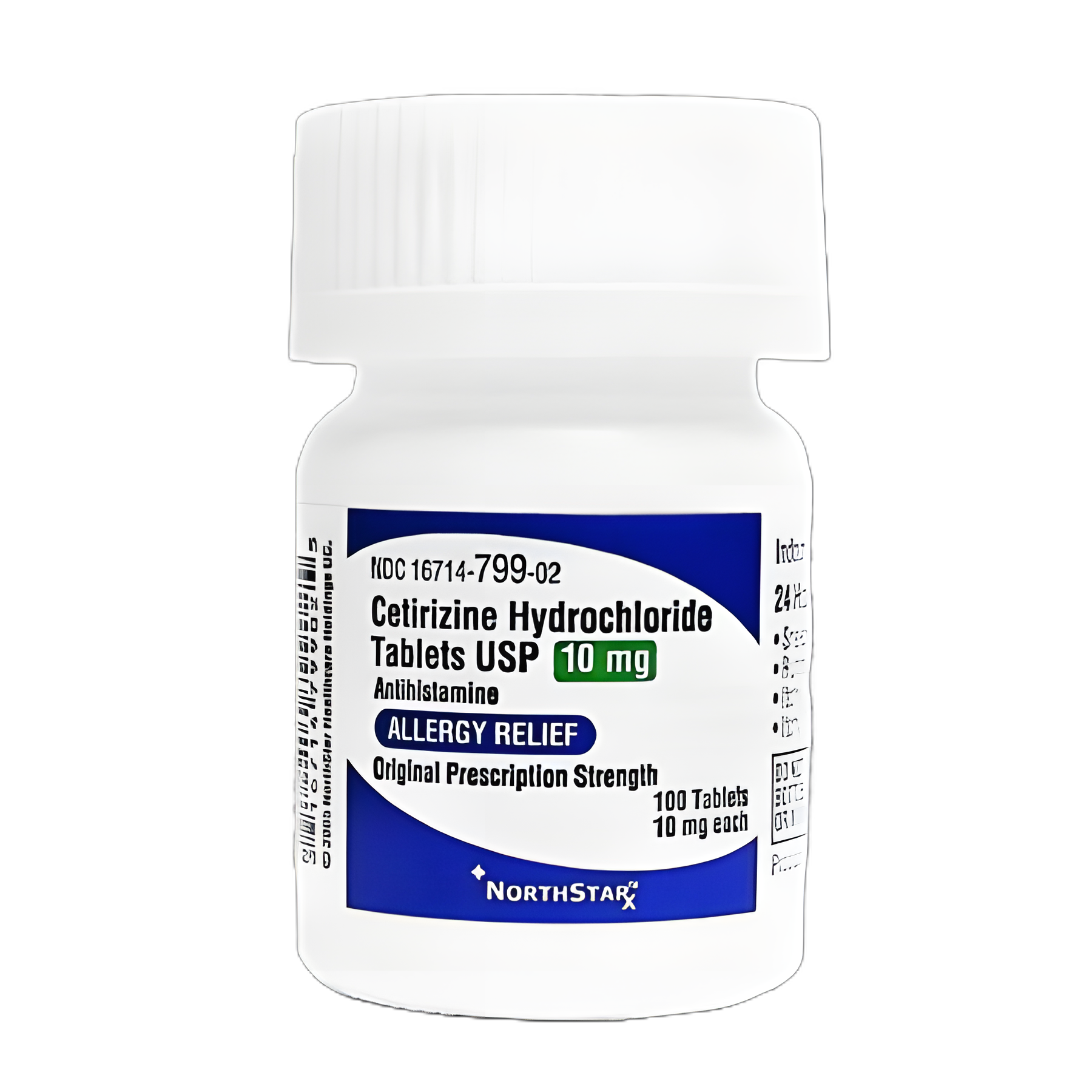 - Contains 100 tablets of NorthStar Cetirizine HCl, each with a 10 mg dosage.