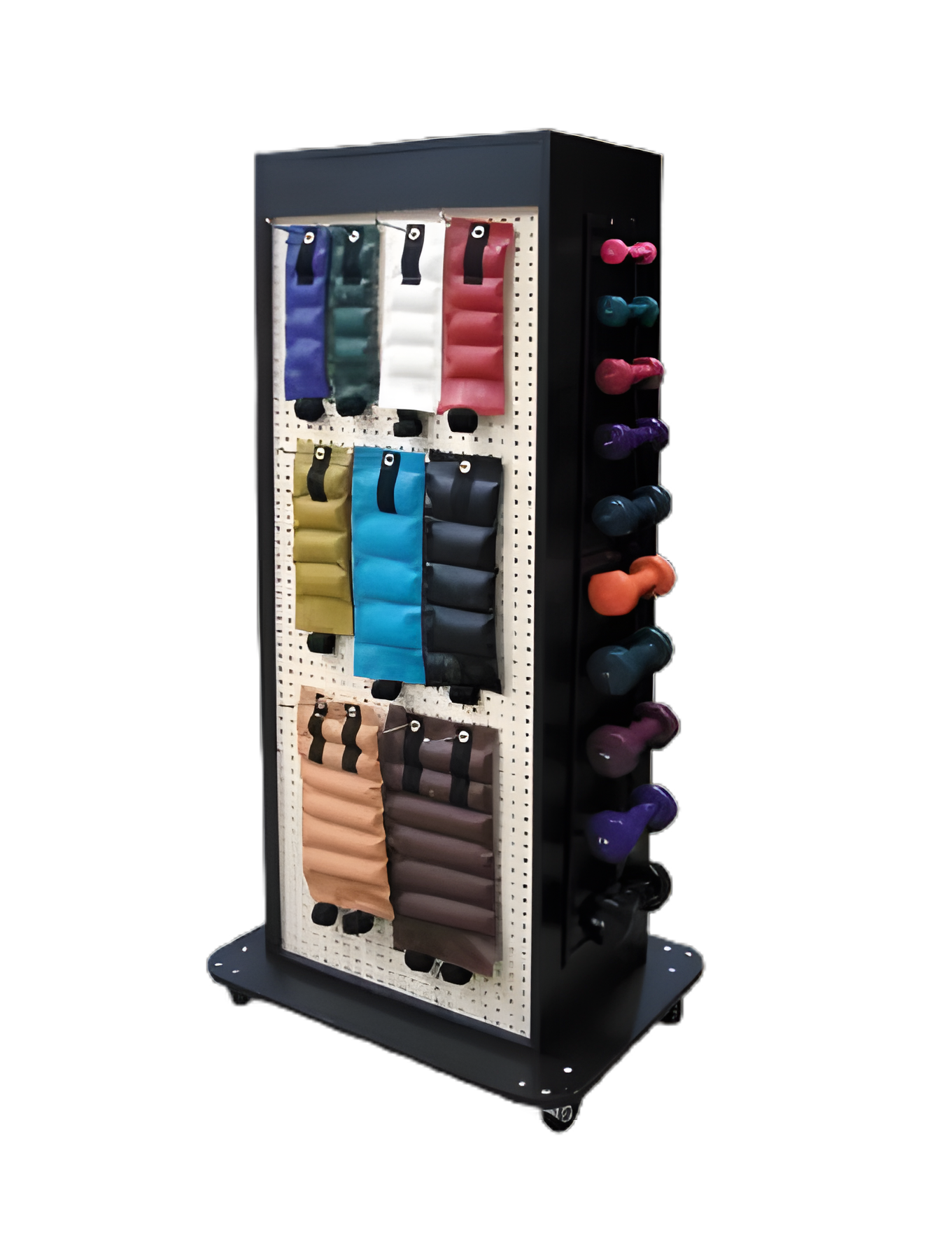 - A pegboard with 11 safety hooks for the Hugger® wrist and ankle weights consisting of two 1 lb, 1-1/2 lbs, 2 lbs, 2-1/2 lbs, 3 lbs, 4 lbs, 5 lbs, and one each of 7-1/2 lbs and 10 lbs weights