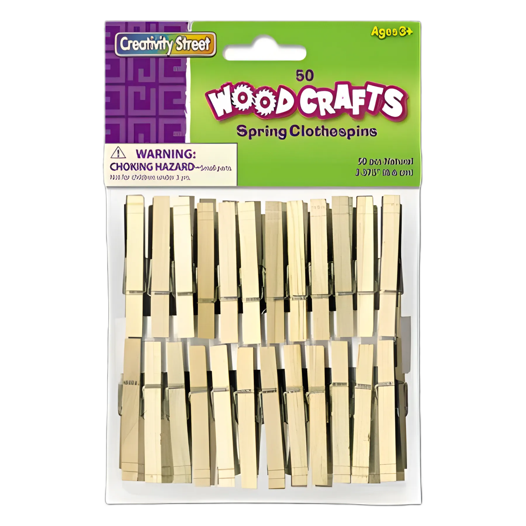 Wood Spring Clothespins, 3.38" Length, Natural, 50/Pack