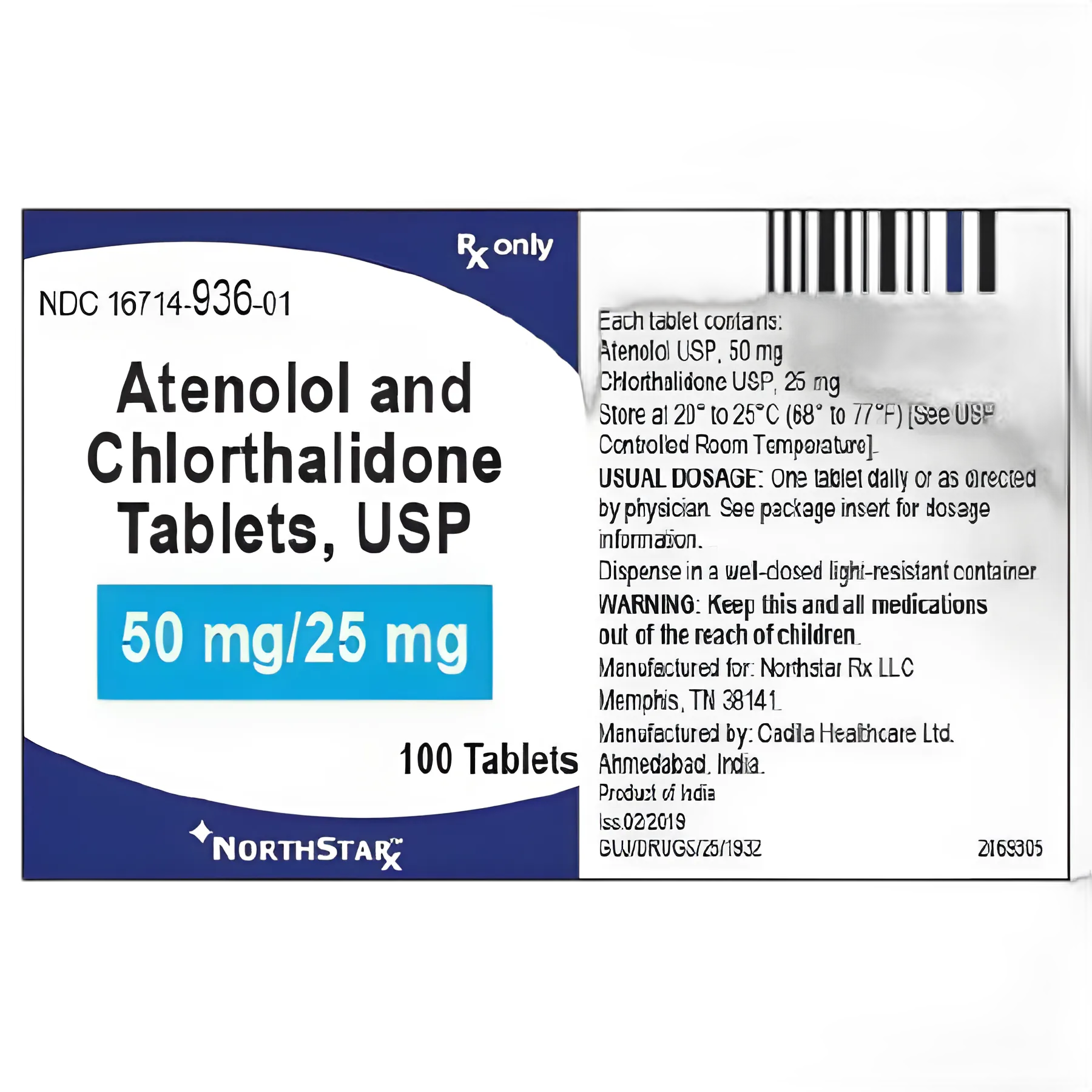 - Each bottle contains 100 tablets of 50 mg Atenolol and 25 mg Chlorthalidone.